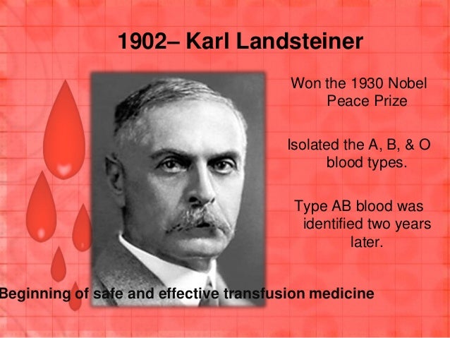 In 1900 Karl Landsteiner discovered that the blood of two individuals under contact agglutinates, and in 1901 he found that this impact was because of contact of blood with blood serum. Subsequently, he succeeded in distinguishing the three blood amasses A, B and O, which he named C, of human blood. Landsteiner additionally discovered that blood transfusion between persons with the same blood bunch did not prompt the demolition of platelets, though this happened between persons of various blood groups.Based on his discoveries, the first an effective blood transfusion was performed by Reuben Ottenberg at Mount Sinai Hospital in New York in 1907.